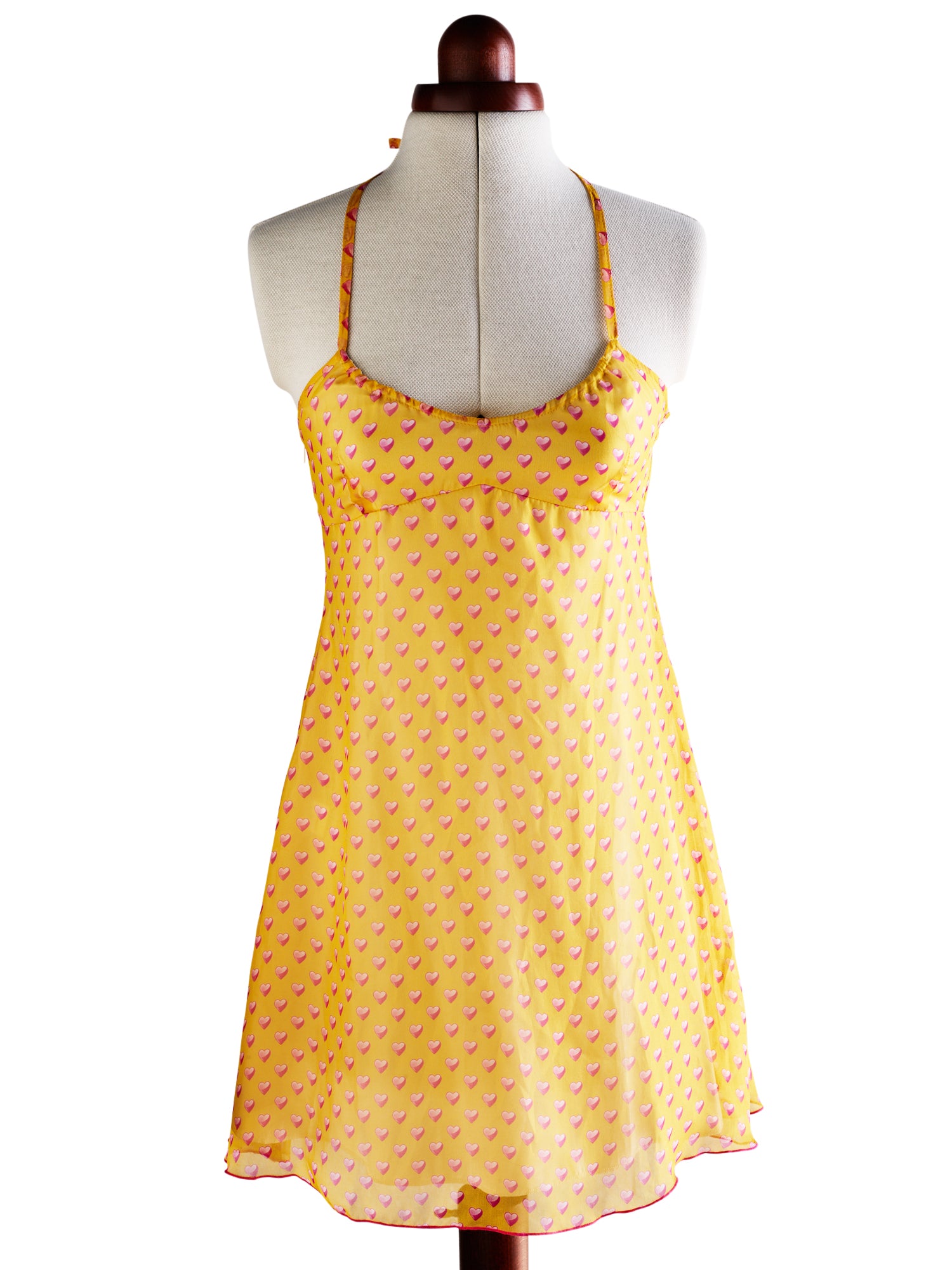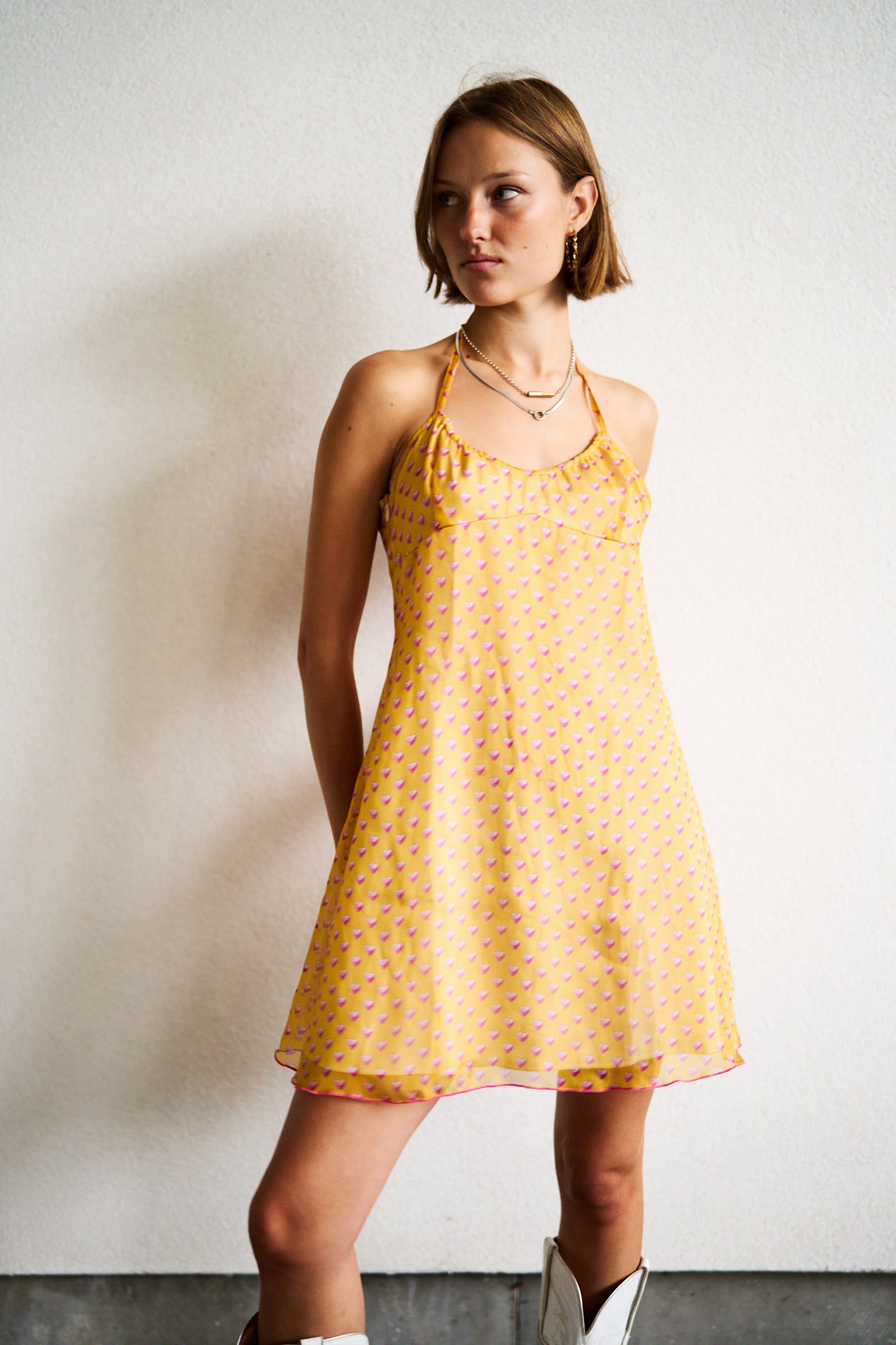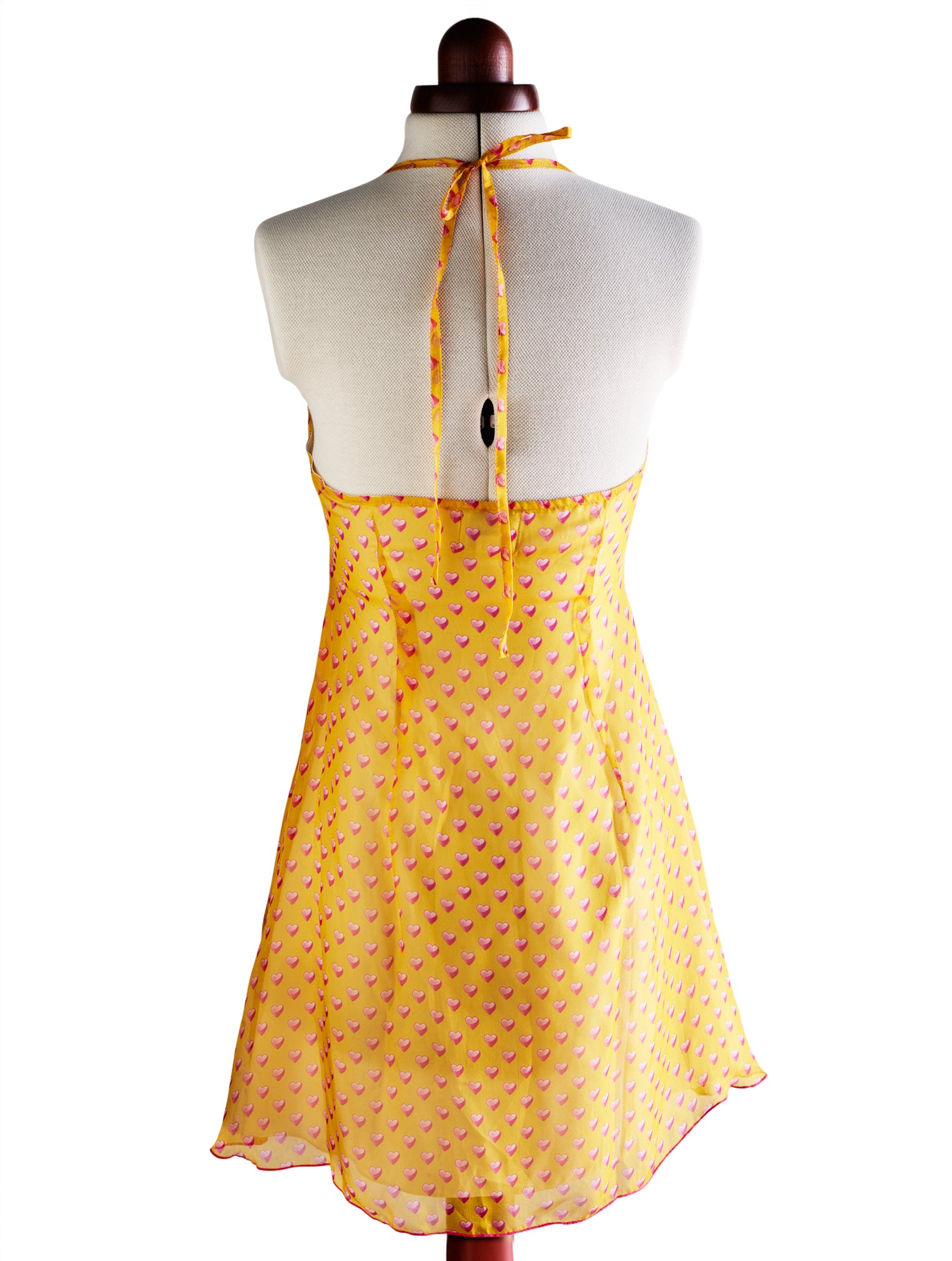Alice Hearts Yellow and Pink Backless Muslin Silk Dress
