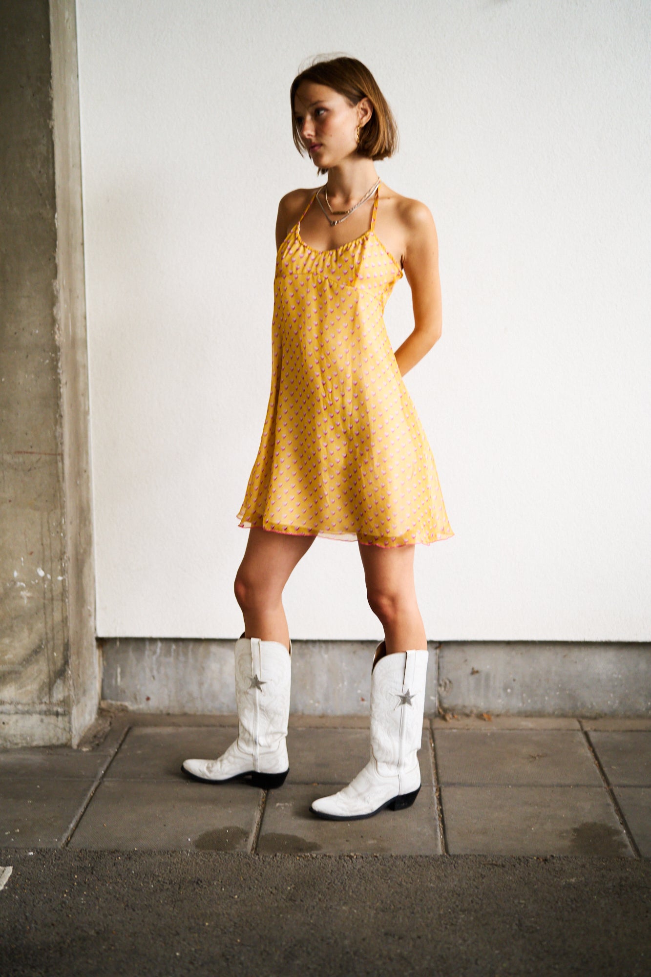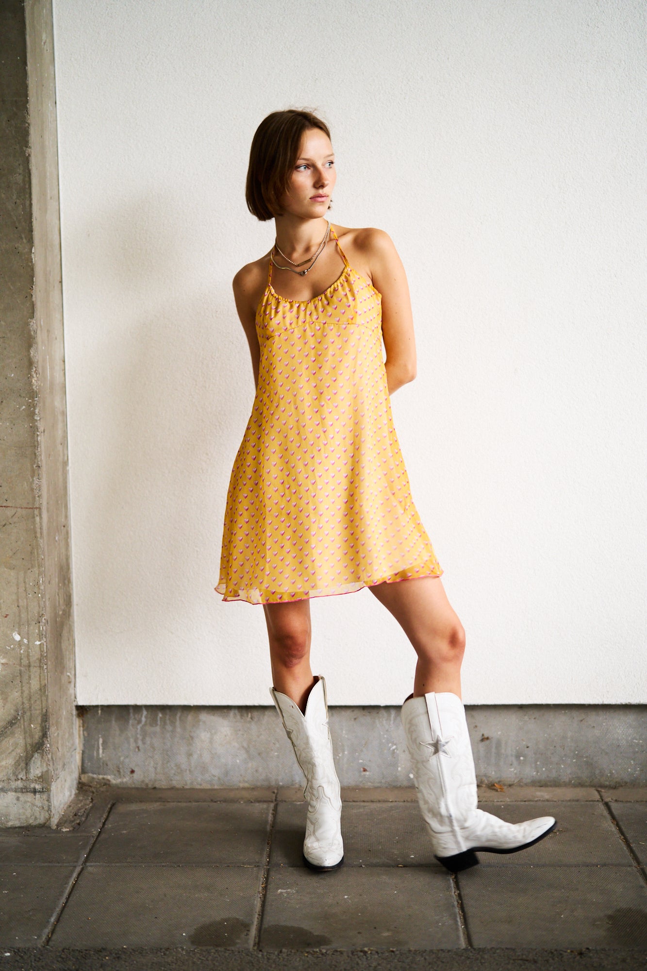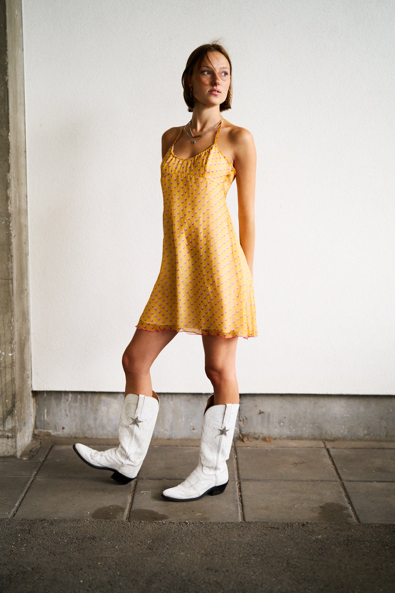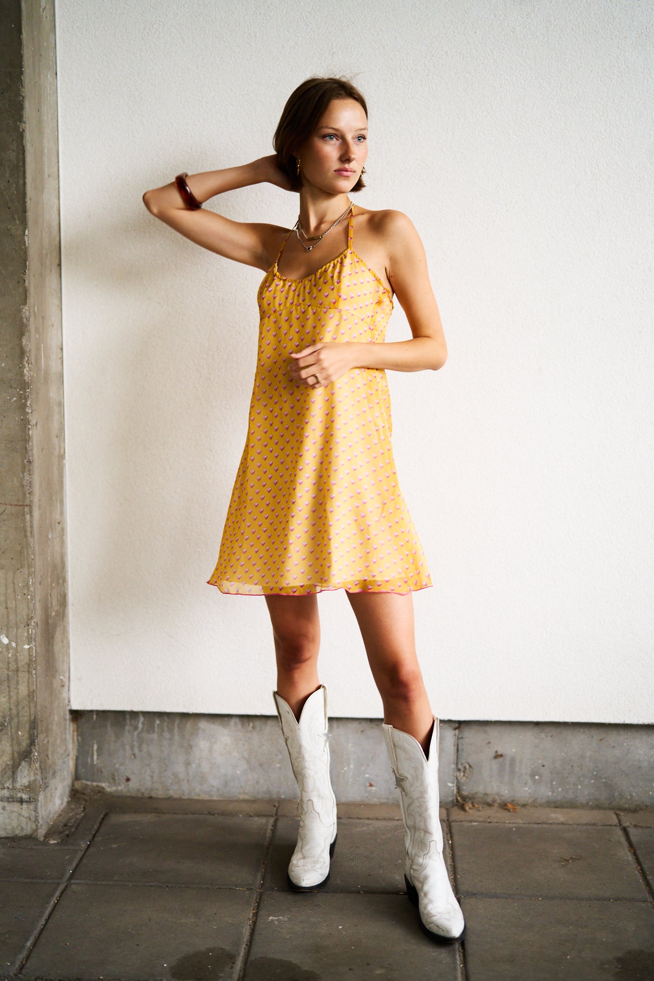 Alice Hearts Yellow and Pink Backless Muslin Silk Dress
