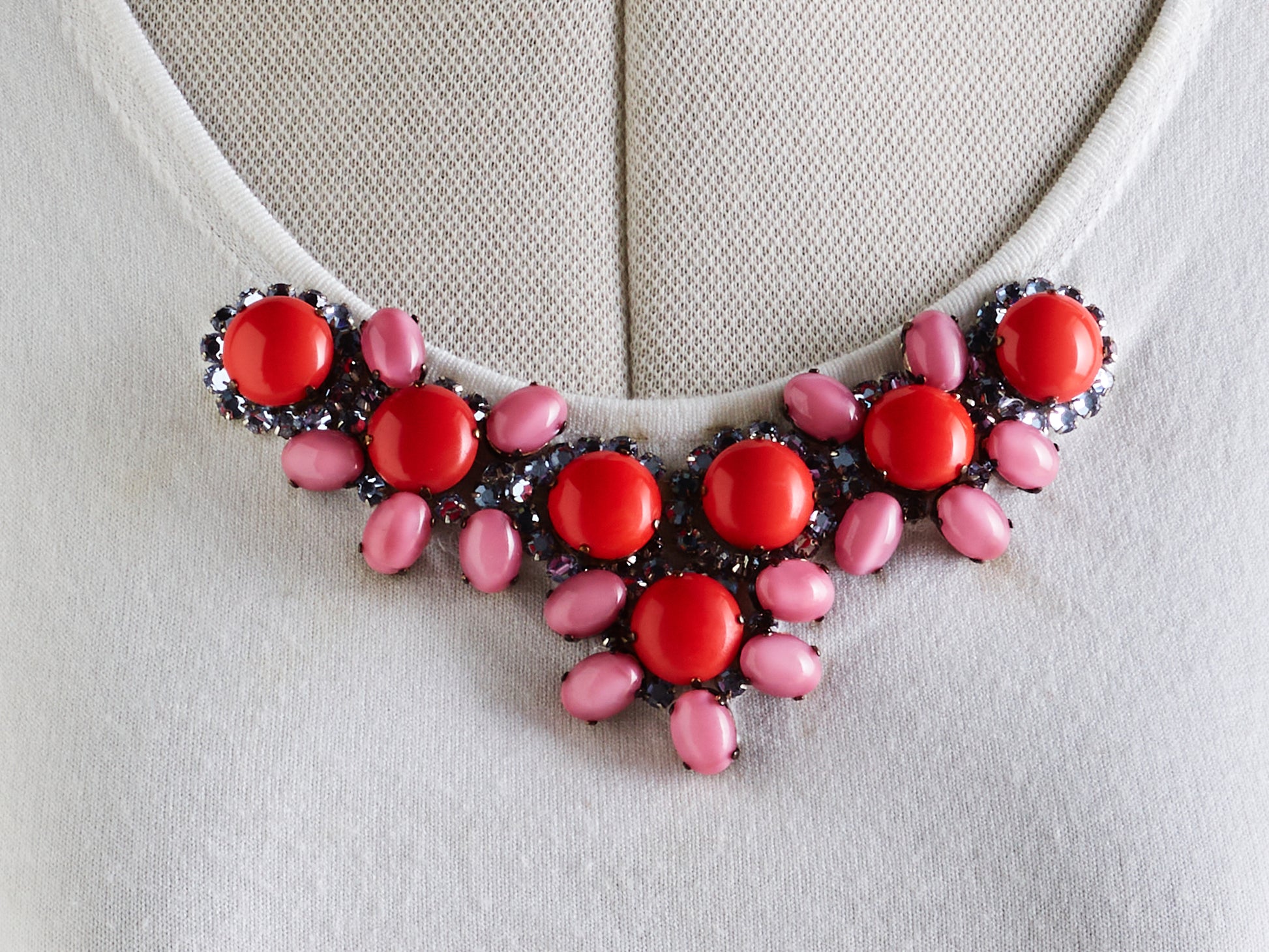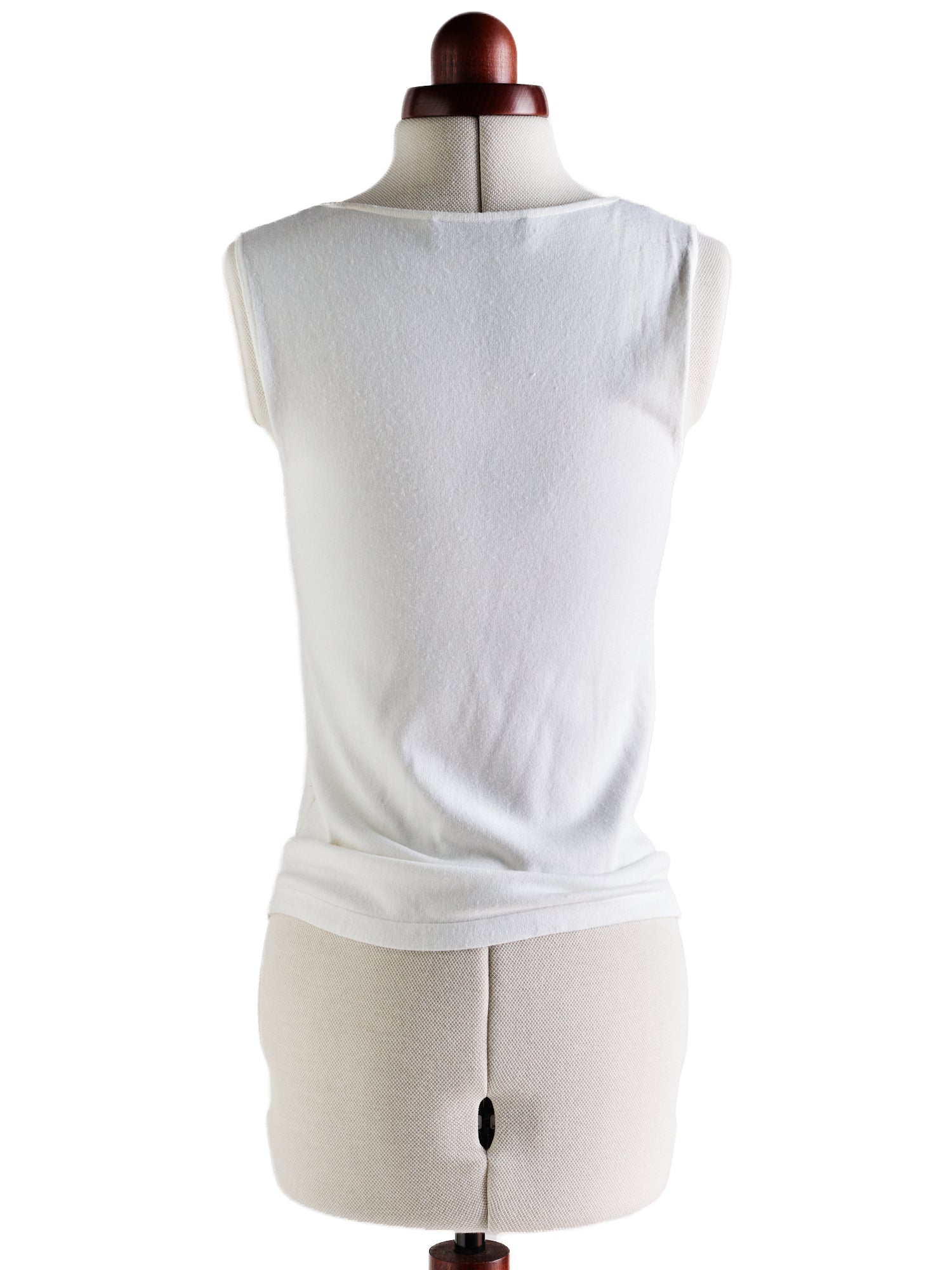 Vintage white Dolce & Gabbana tank top with beautiful red, pink and purple diamante embellishments around the neckline. The fabric has a nice stretch to it, making it suitable for many different body shapes.