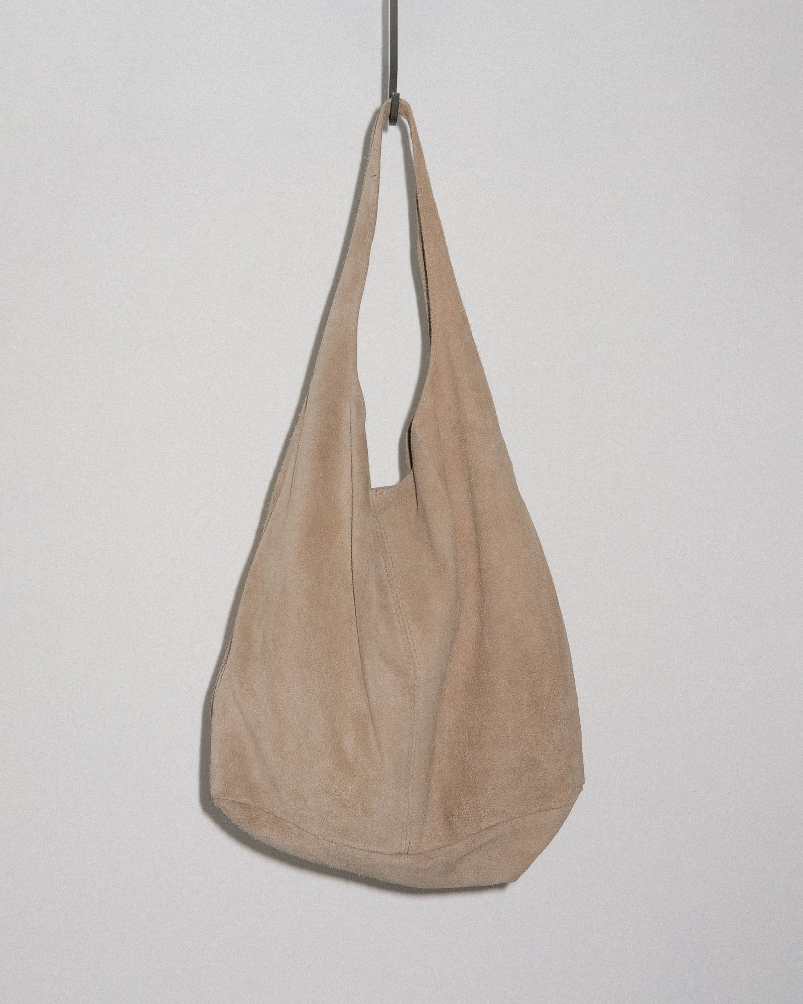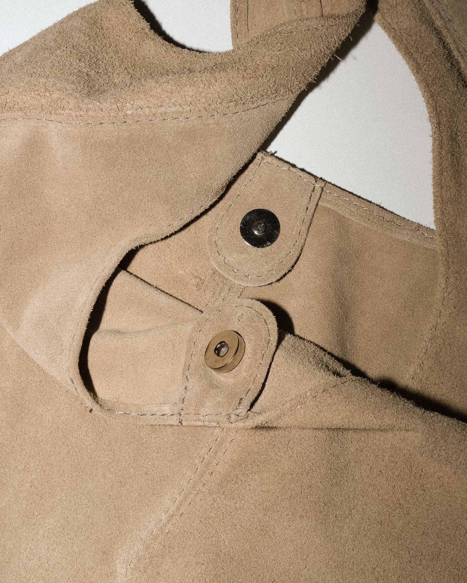 Suede leather shoulder bag. Made from high-quality Italian suede leather. Click button as closure. Fits all your daily needs.