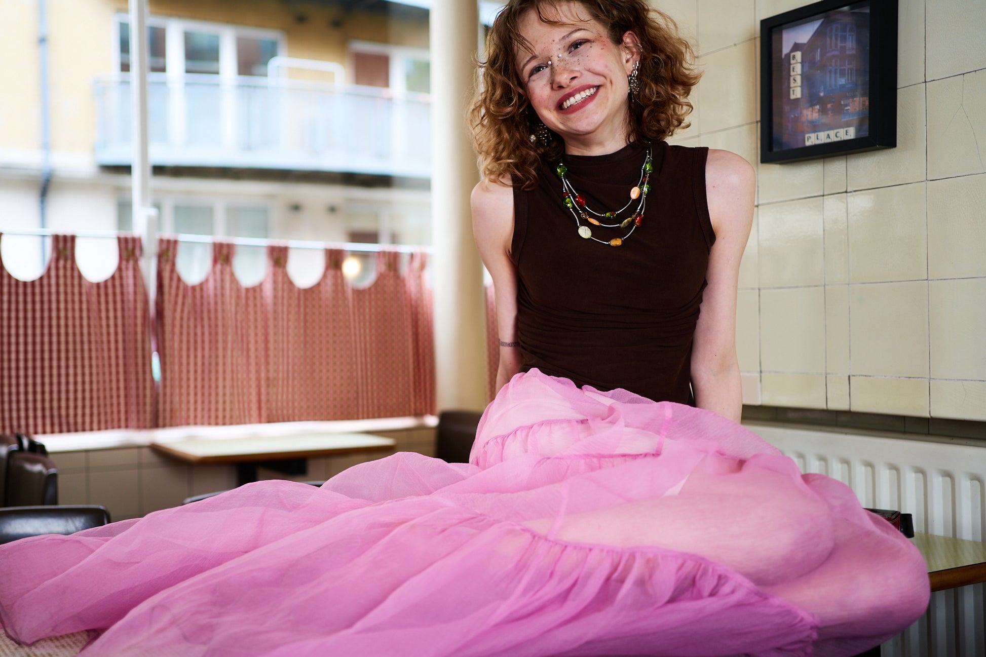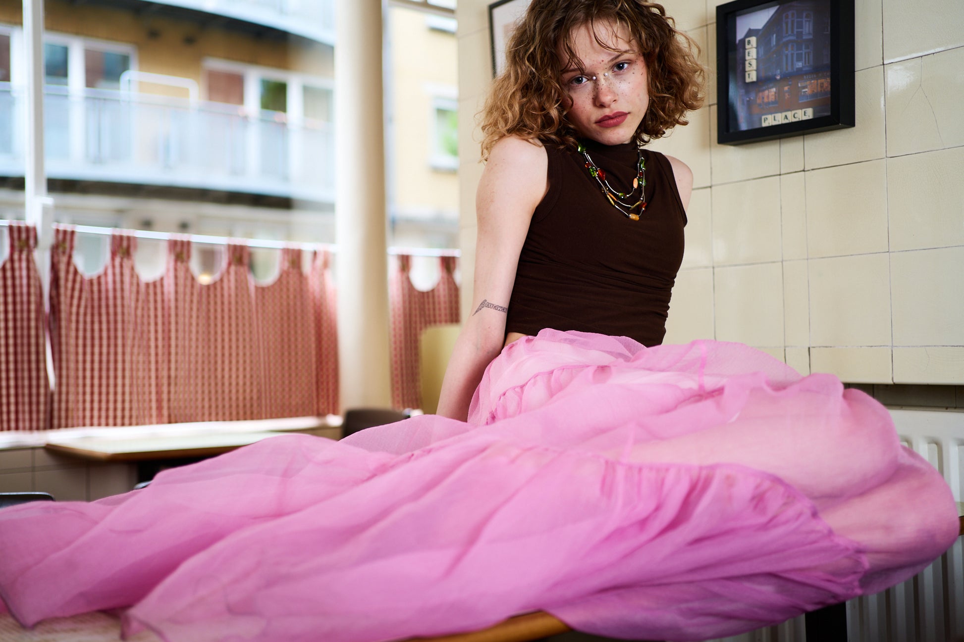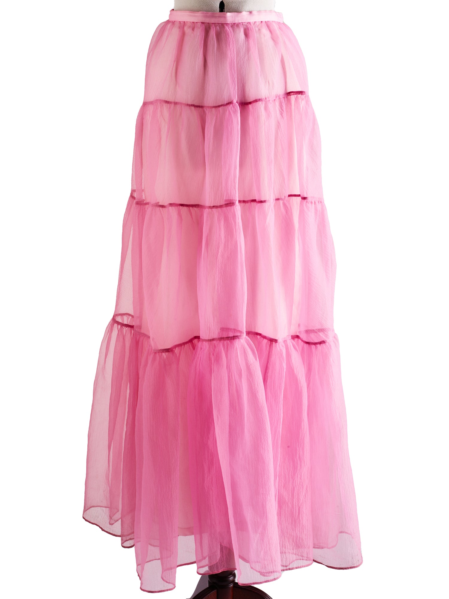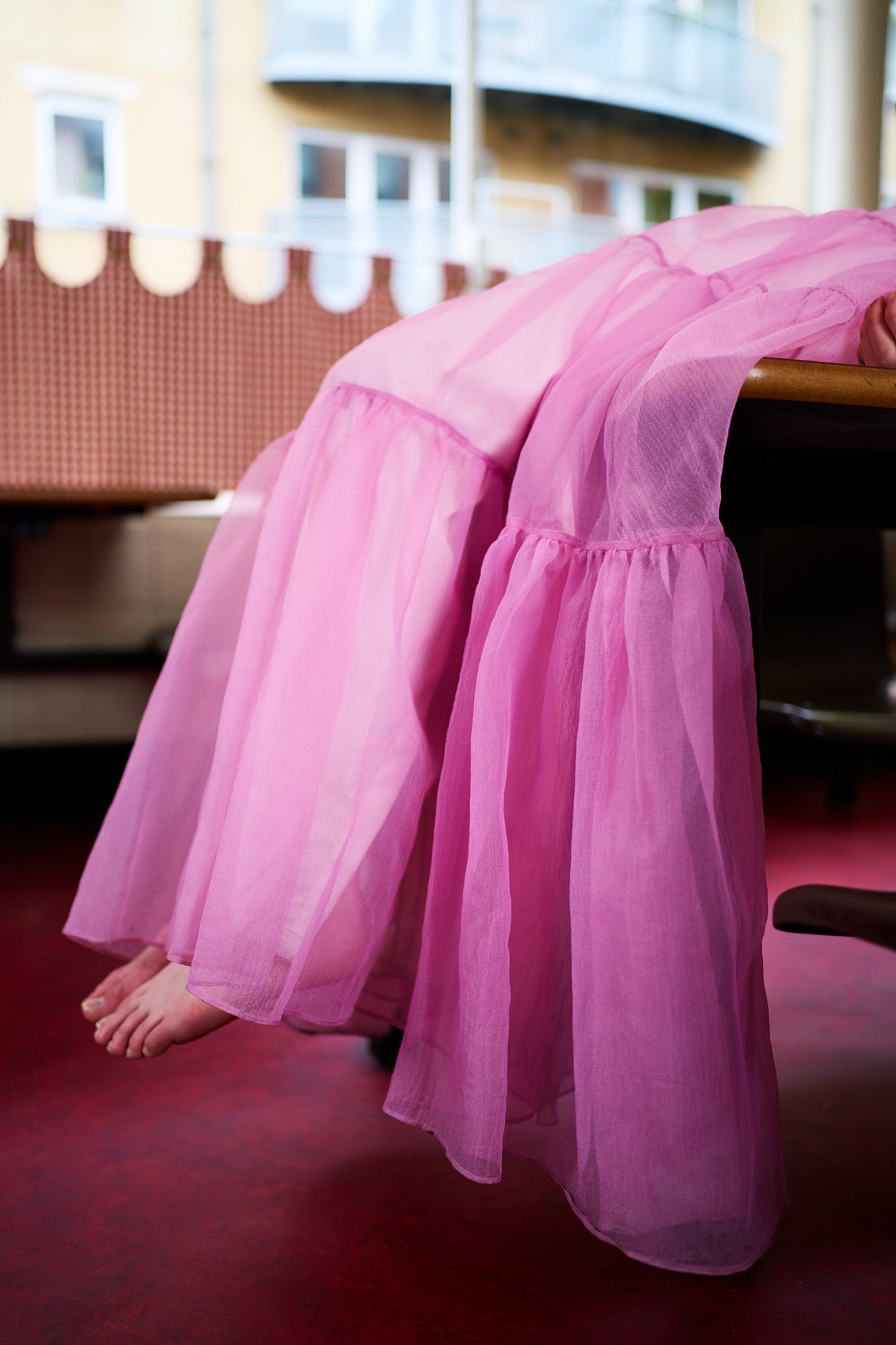 Sister to our sold-out STAUD Dragon Skirt in California Poppy Peony, the STAUD Baby Pink Dragon Skirt. Both are entirely sold-out elsewhere, incredibly rare and unique. So we're thrilled to have our hands on them.