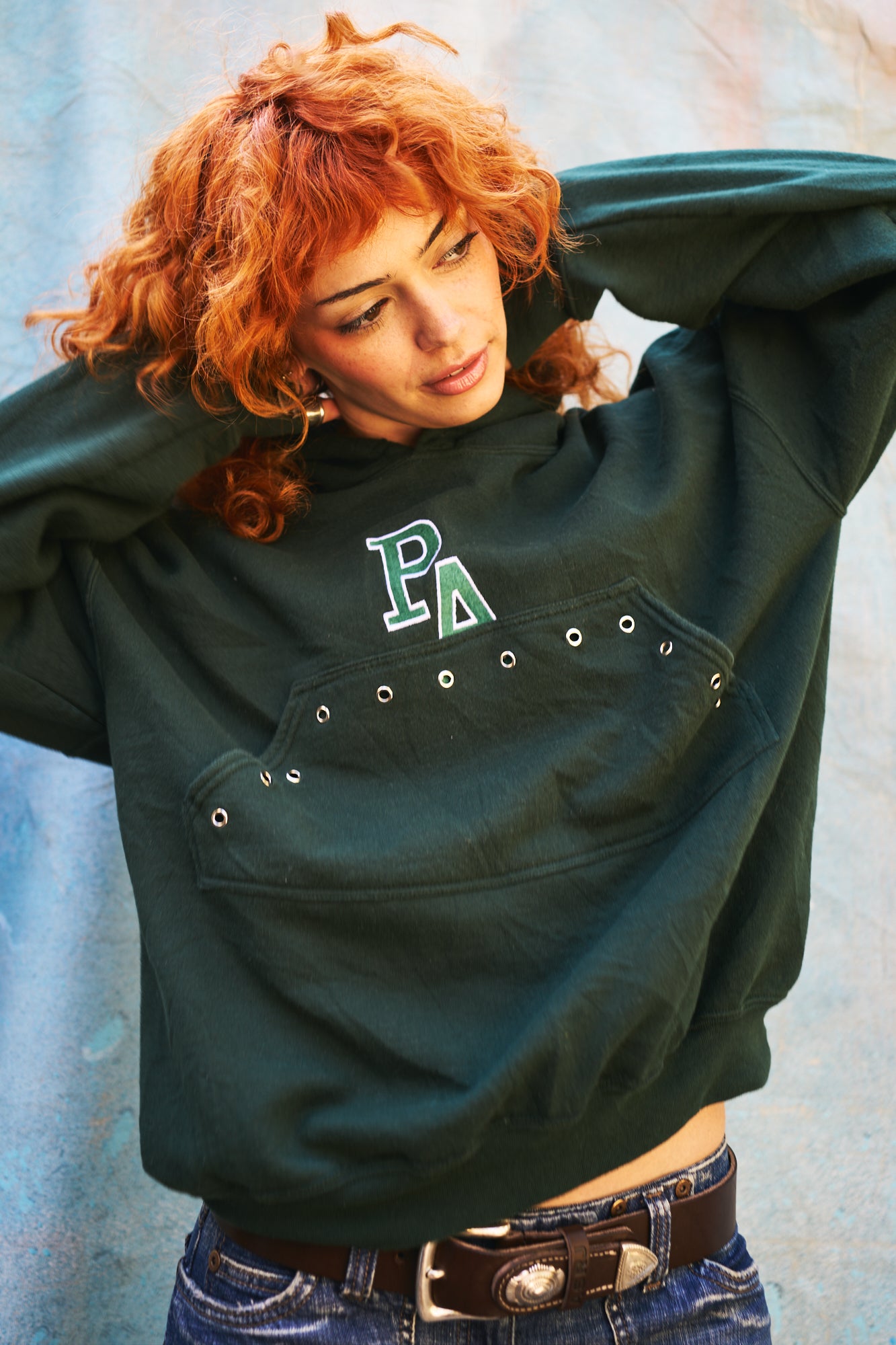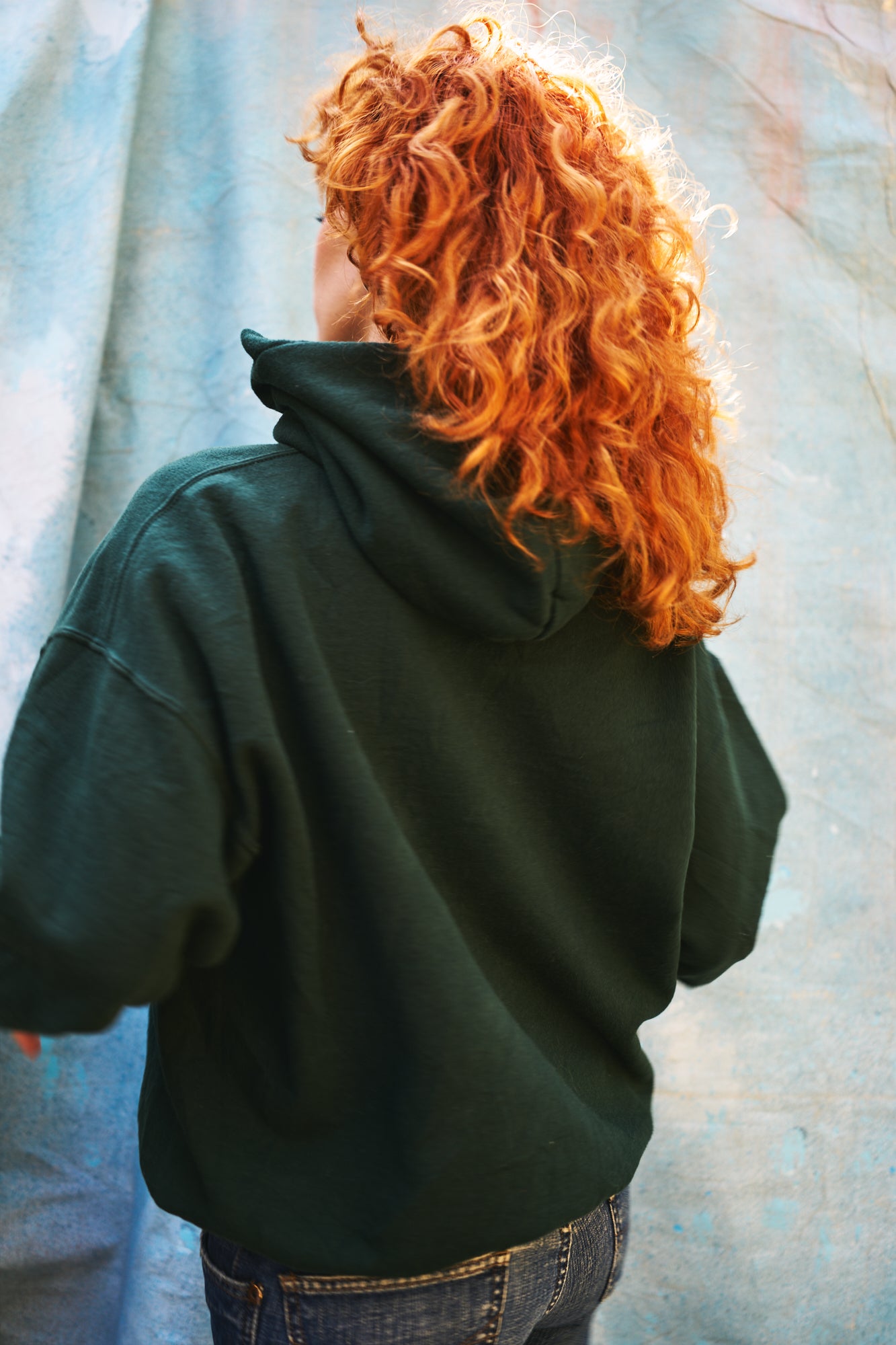 Reconstituted vintage hoodies. Handpicked piece-by-piece for their cute vintage slogans/branding. Kangaroo pockets have been carefully removed and re-positioned to be on the chest. Hardware added by hand. Made in the UK. Unique by nature, no two pieces are the same and identicals will never be restocked.