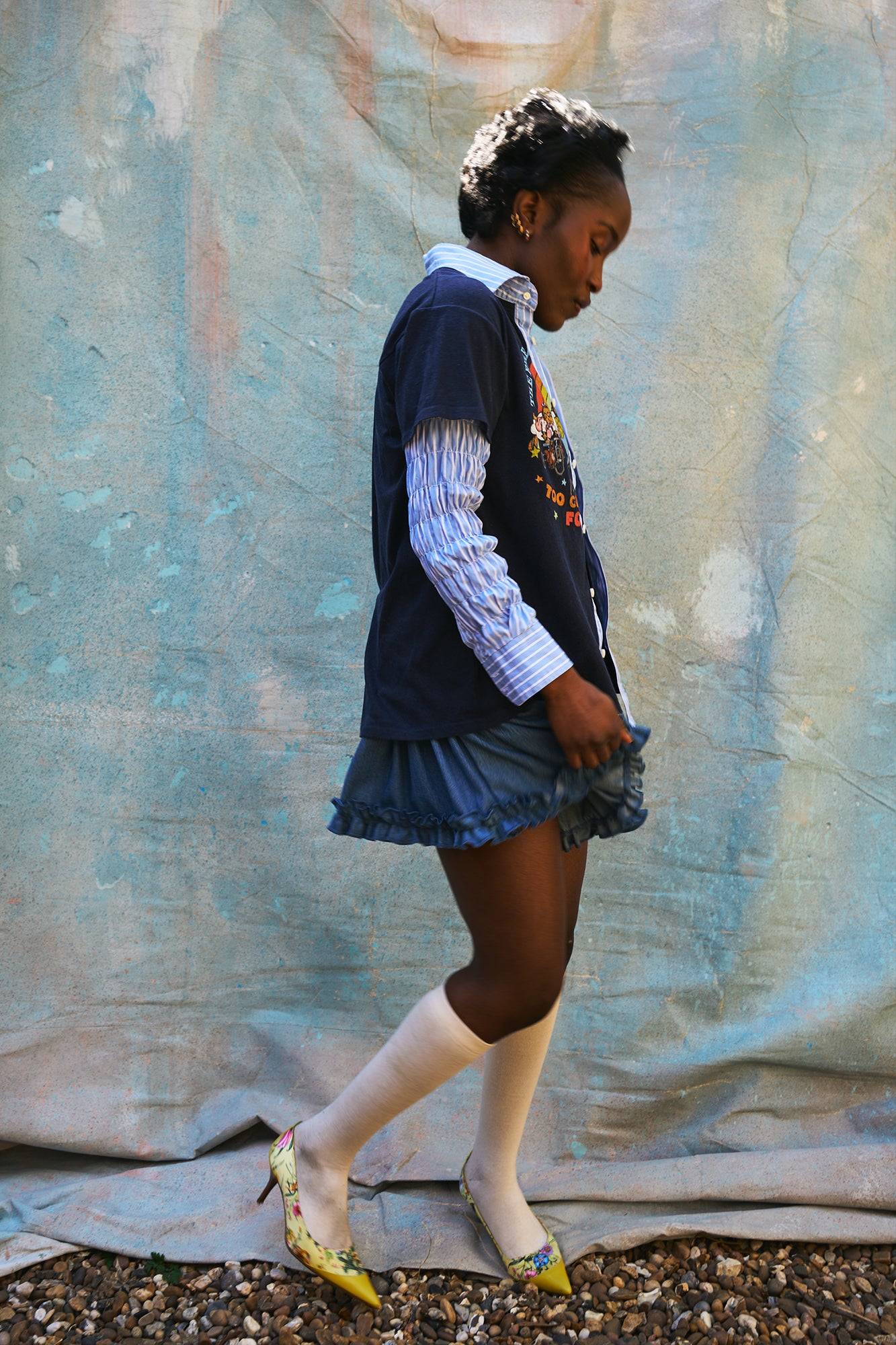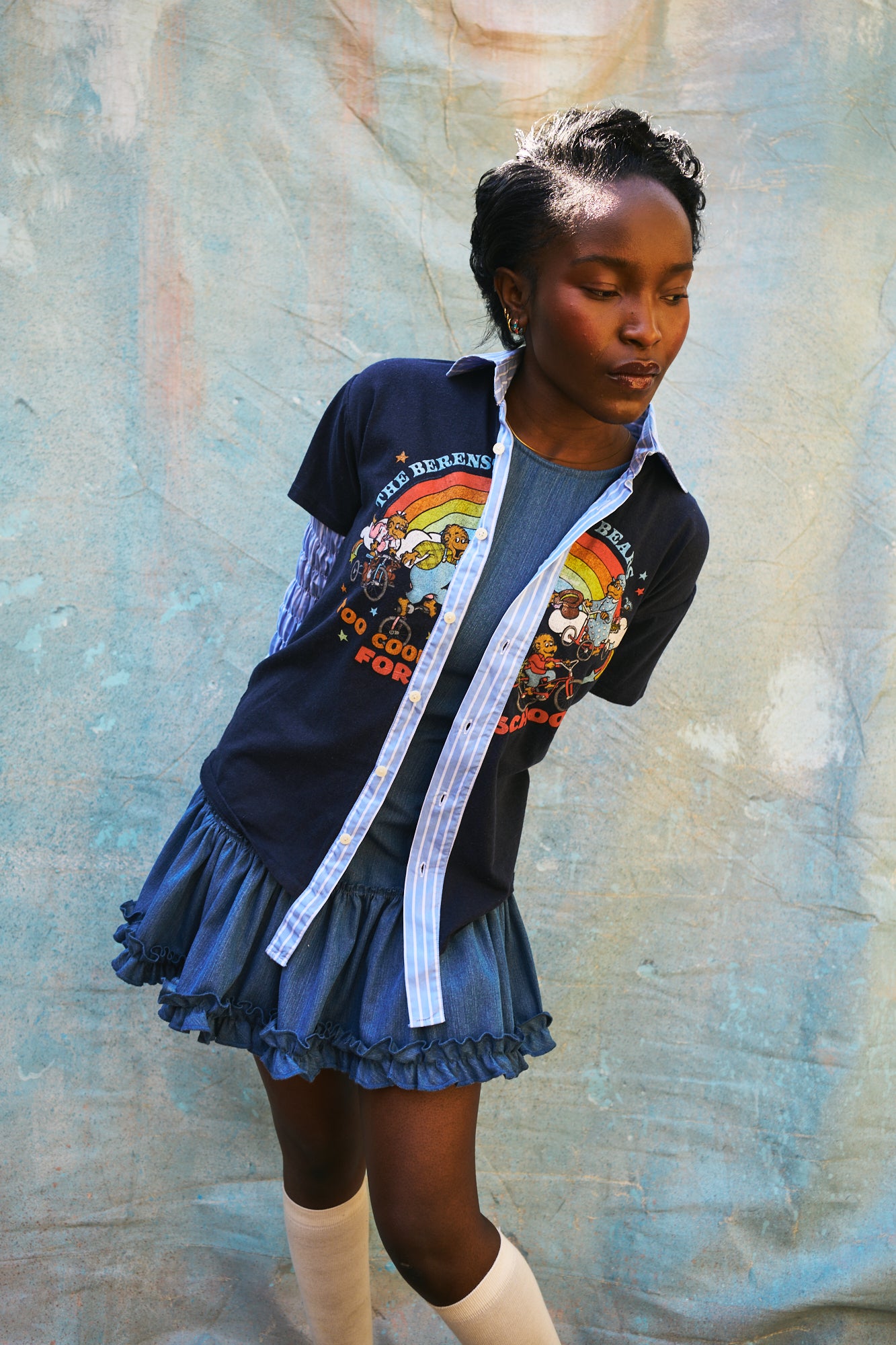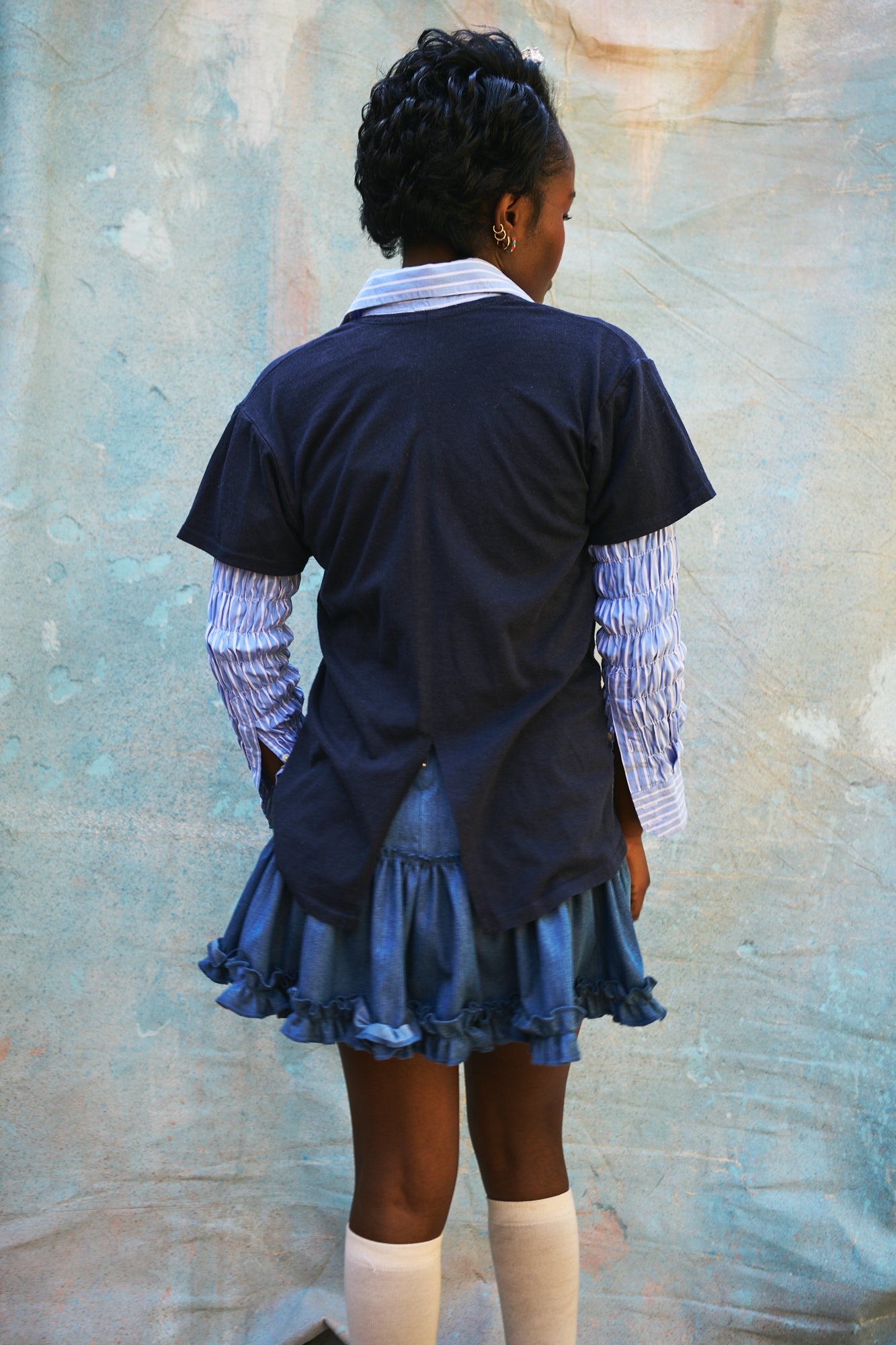 A hybrid style, the love-child of a striped Oxford shirt and a slogan tee. Handpicked piece-by-piece for their silly little slogans and paired with a more sensible partner, the Oxford shirt. Unique by nature, no two pieces are the same and identicals will never be restocked.