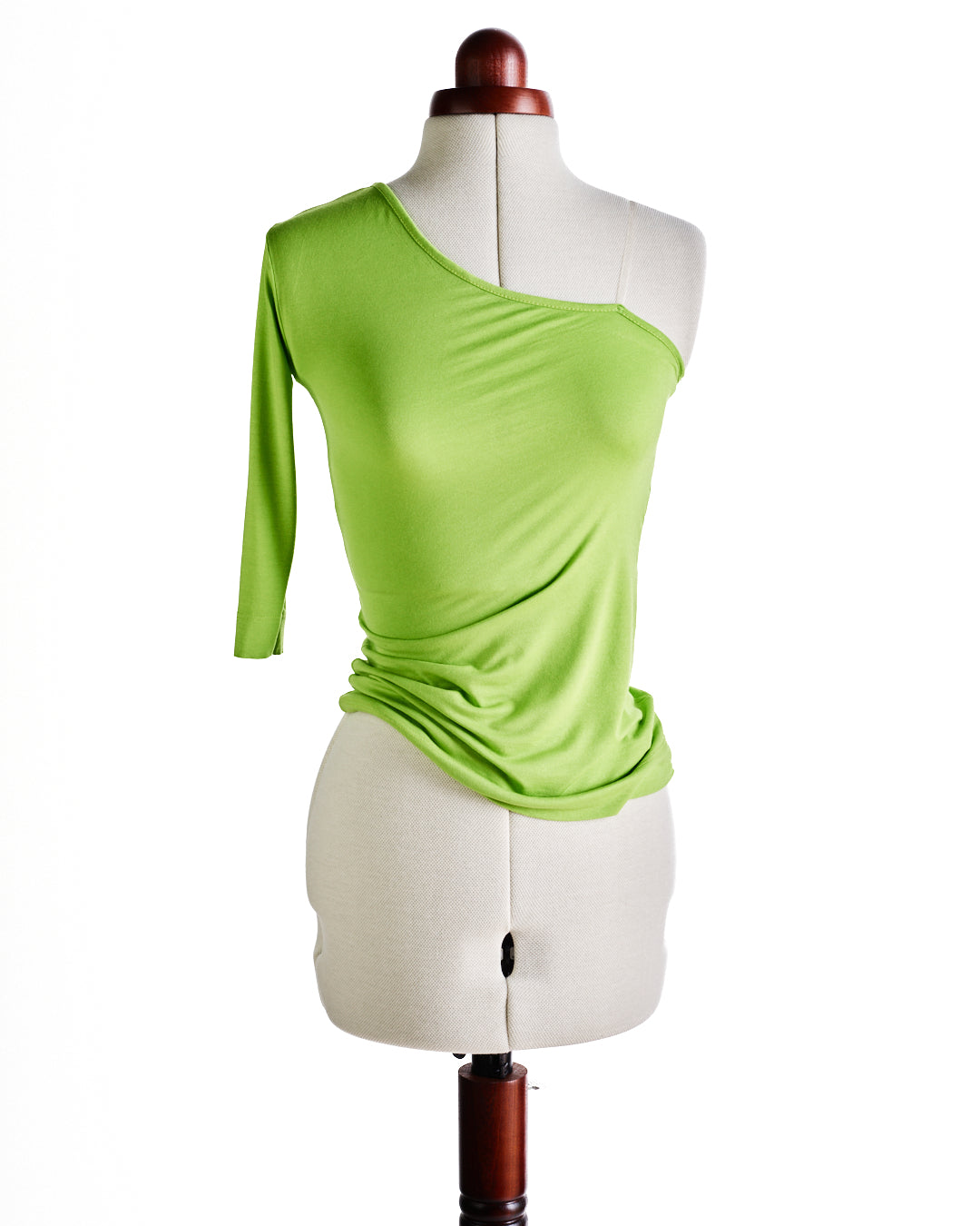 Unsigned One-Shoulder Green Long-Sleeve Top